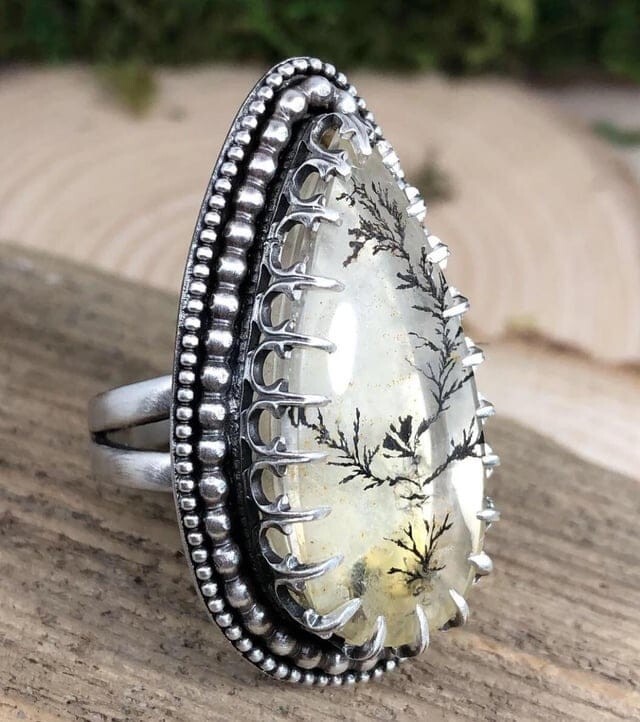 Кольцо, сделанное из дендритового кварца, стерлингового и чистого серебра