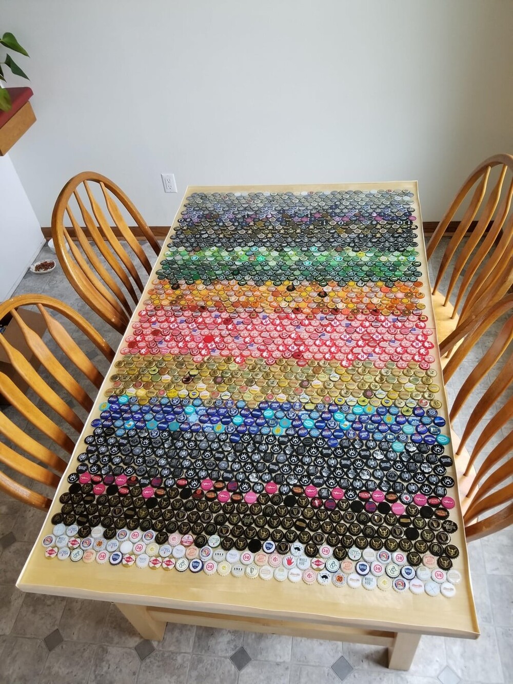 14. Я собирал бутылочные крышки в течение пяти лет, чтобы сделать этот столик