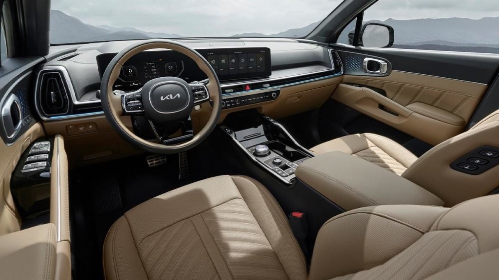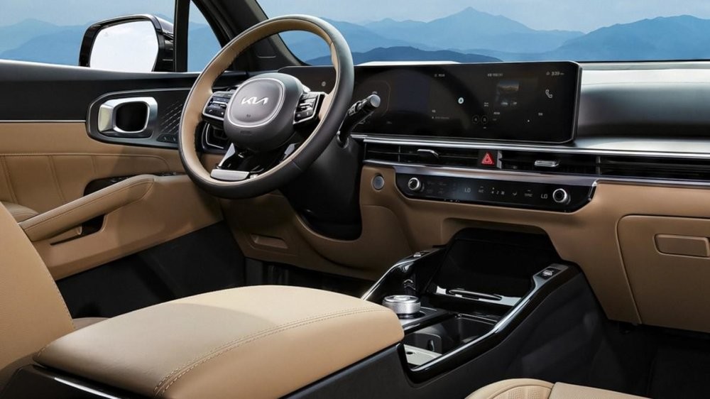На опубликованных ранее снимках салона можно было заметить, что вместо раздельных дисплеев на передней панели Sorento появился изогнутый планшет. В этом кластере объединены 12.3-дюймовые экраны цифровой приборки и новой медиасистемы, поддерживающей теперь обновление «по воздуху». В дорогих версиях Sorento будет комплектоваться ещё и 10-дюймовым проекционным дисплеем.