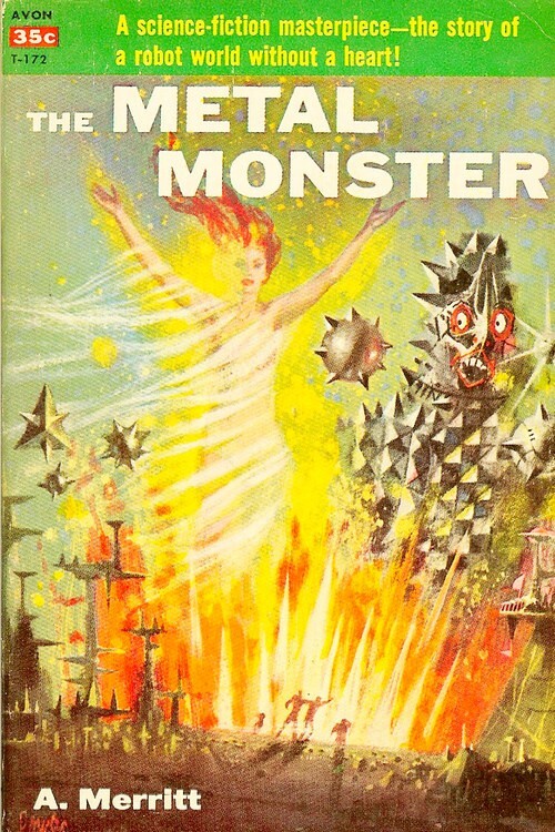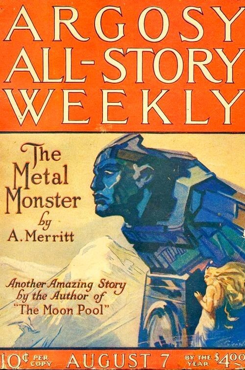В следующем романе Меррита — «Металлическое чудовище»/The Metal Monster (журнал «Argosy All-Story», 7-28.08.1920) доктор Гудвин исследует недоступный район Гималаев и сталкивается с явными проявлениями коллективного сознания у загадочных металлических существ, которые имеют форму кубов, шаров и конусов и способны свободно передвигаться в пространстве и собираться в огромные живые механизмы.