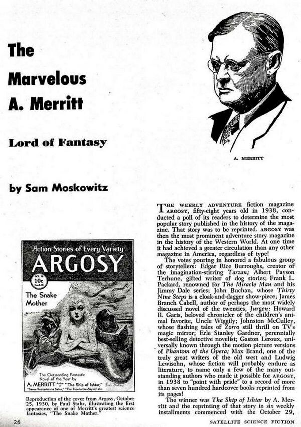 Несколькими годами ранее Гернсбек проводил аналогичный опрос среди читателей своего «Wonder Stories». Правда, он сразу задал чёткие рамки, попросив назвать самое интересное произведение именно в жанре НФ. И — кто бы мог подумать — здесь победу также одержал Меррит со своей «Лунной заводью»!