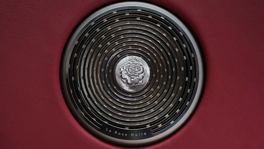 Приоритетное внимание при кройке салона уделялось материалам и мастерству исполнения, а не электронике. Только на создание мозаичного панно, символизирующего собой опадающие лепестки роз, мастерам потребовалось около года труда, ушедшего на ручную обработку и подгонку 1603 плашек дерева чёрная сикомора из Франции. Также, следуя традициям, в машине предусмотрен охлаждаемый контейнер для пары бутылок с сервировочным подносом, в данном случае Champagne de Lossy.