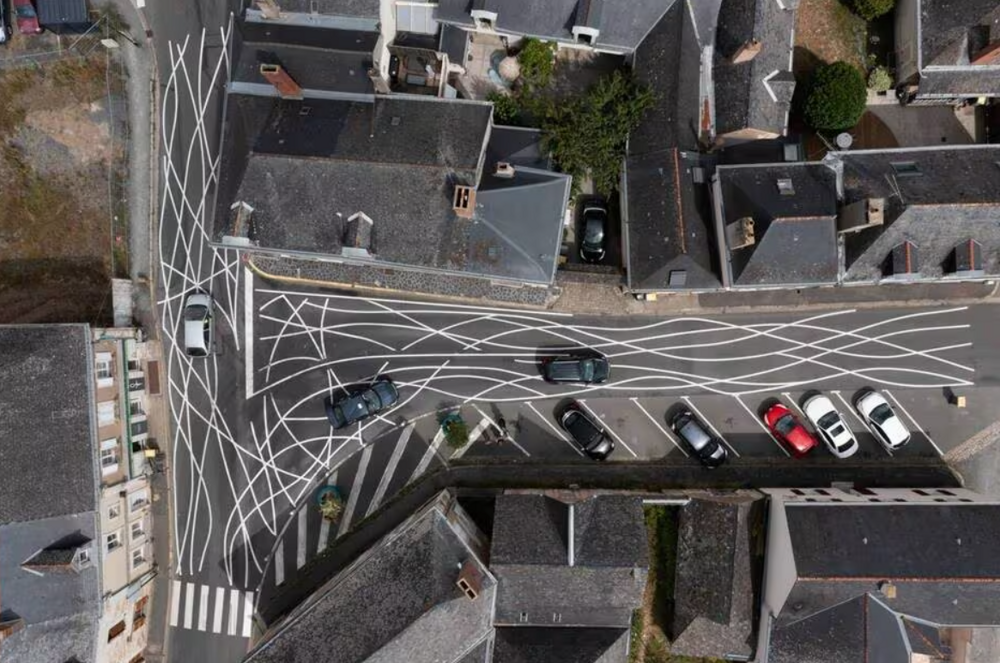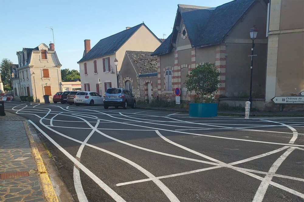 В маленьком французском городке нанесли запутанную разметку, чтобы водители не превышали скорость (2 фото)
