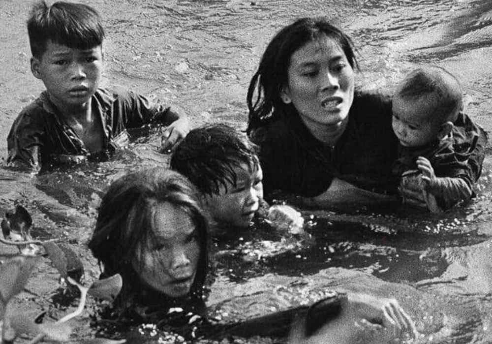 5. Мать с детьми из Южного Вьетнама переплывают реку, спасаясь от нападающих во время операции «Пиранья», 1966 год