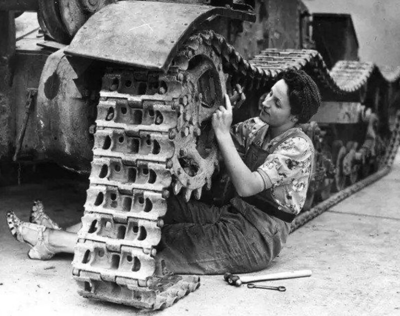 12. Девушка чинит танк. Англия, 1940 год