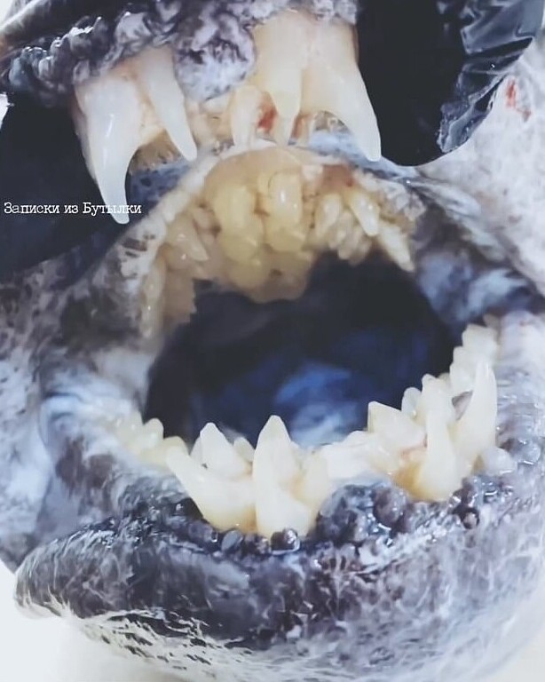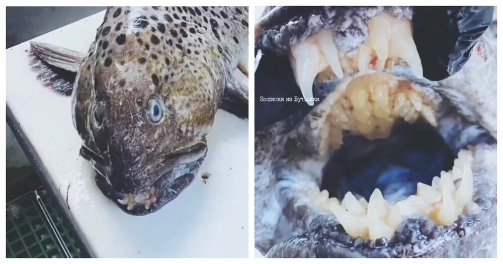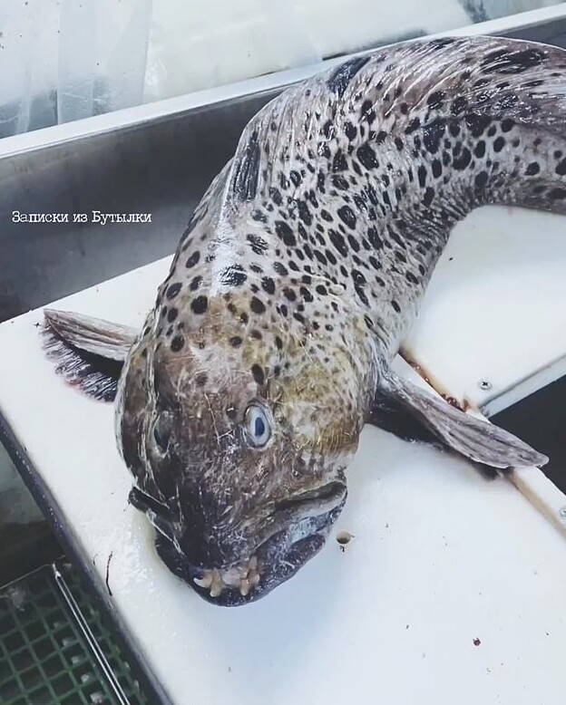 Моряк и блогер Роман Федорцов снова поймал причудливую рыбу. На челюстях существа несколько рядов зубов, похожих на человеческие. Вероятно, крупная пятнистая рыба является разновидностью угревидной зубатки.