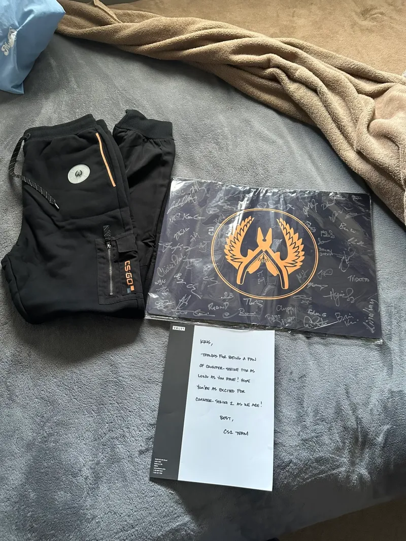 По словам wutang_72, в ходе разговора Ньюэлл и Магал расстроились, что не смогли провести для фаната CS:GO экскурсию по студии, поэтому они пообещали прислать игроку «нечто особенное». Спустя некоторое время ютубер получил в подарок штаны с логотипом CS:GO, коврик для мыши с автографами разработчиков и послание от создателей онлайн-шутера. Стоит отметить, что у wutang_72 довольно небольшой YouTube-канал, у которого меньше 500 подписчиков.
