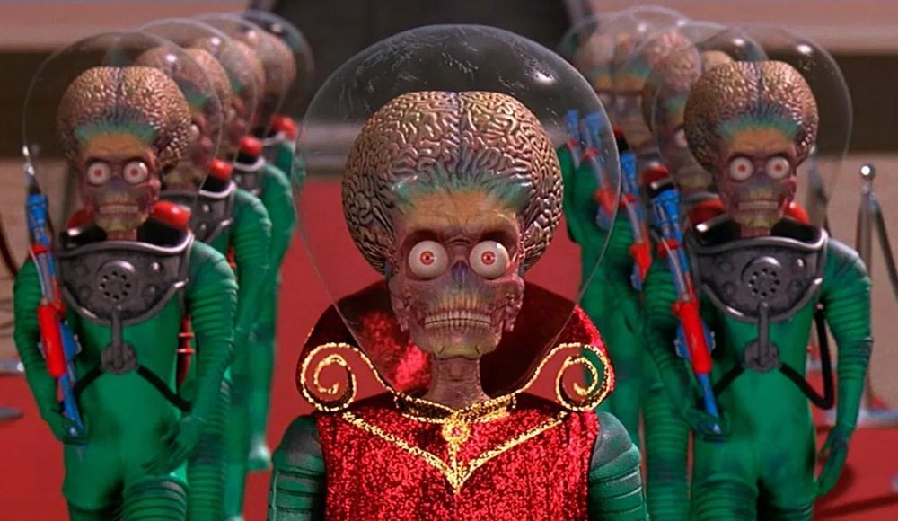 9. Бертон довольно долго противился тому, чтобы в фильме использовалось такое огромное количество компьютерной графики. Поэтому, даже самих марсиан он предложил создать с помощью метода покадровой анимации. Но после нескольких тестов он понял, что выходит все это очень плохо, поэтому согласился на компьютерную графику.