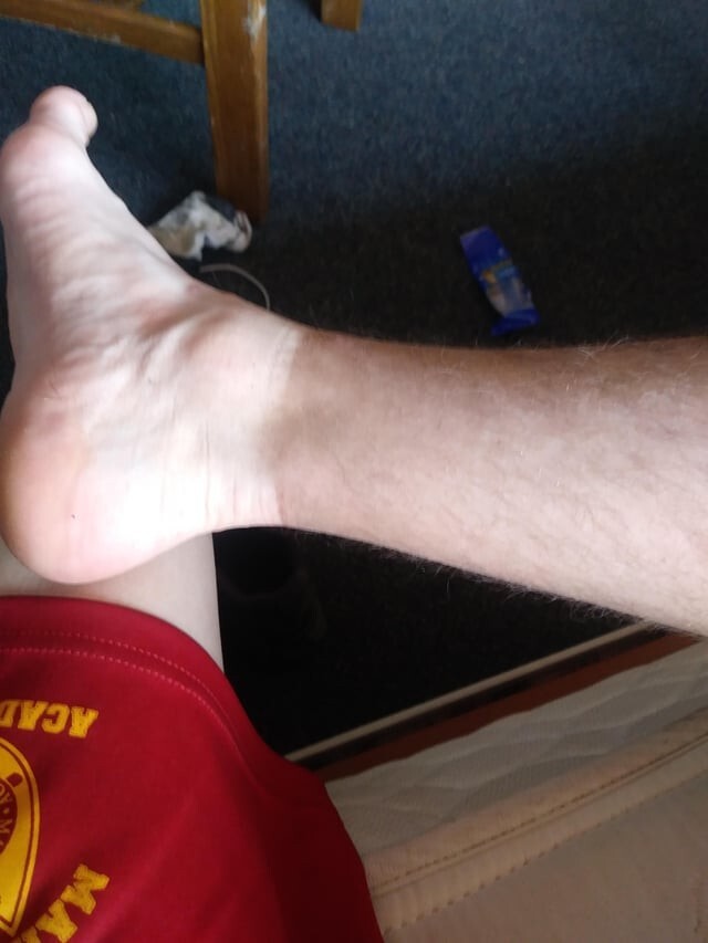 3. "Работаю на съёмочной площадке, так выглядит моя нога после 13-часовой смены. Она реально опухла"