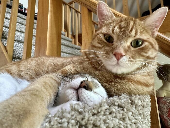 18. "Кажется, моему коту понравился наш новый приютский котёнок"