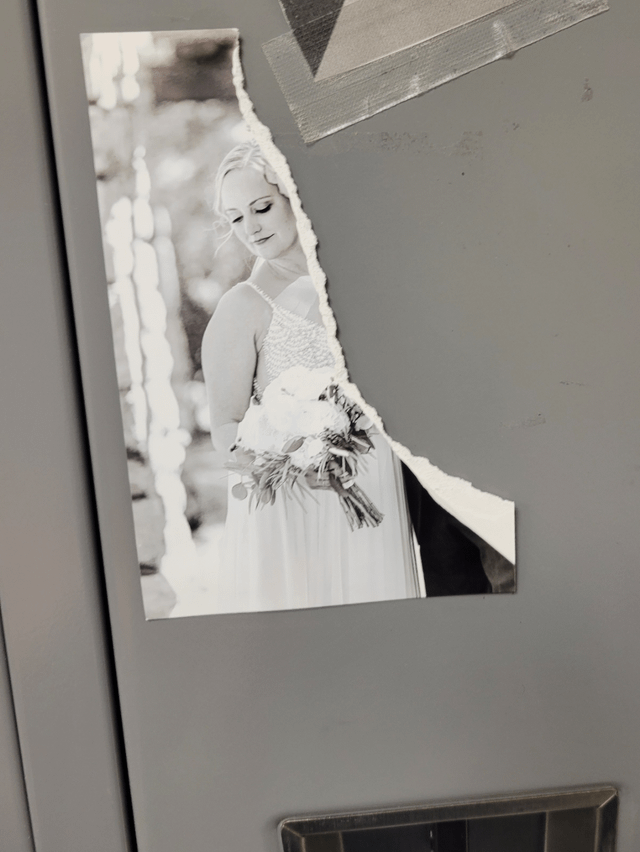 7. Неизвестный порвал свадебную фотографию на чужом шкафчике