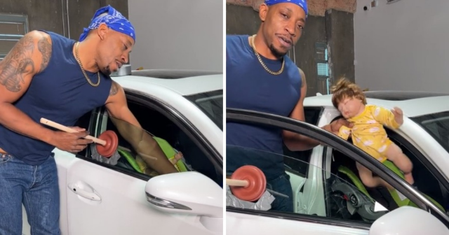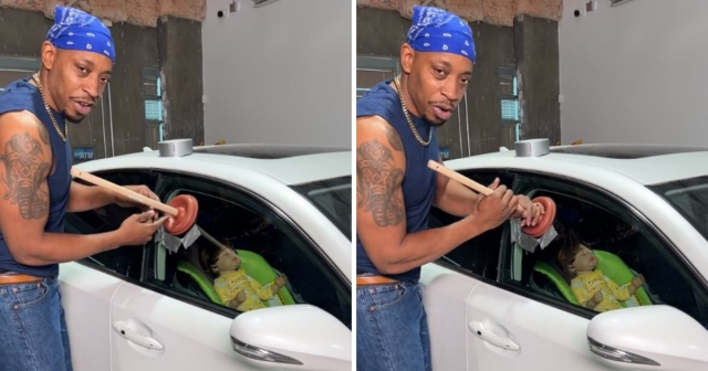 В Сети завирусилось видео, в котором парень вскрыл машину с помощью вантуза (4 фото)
