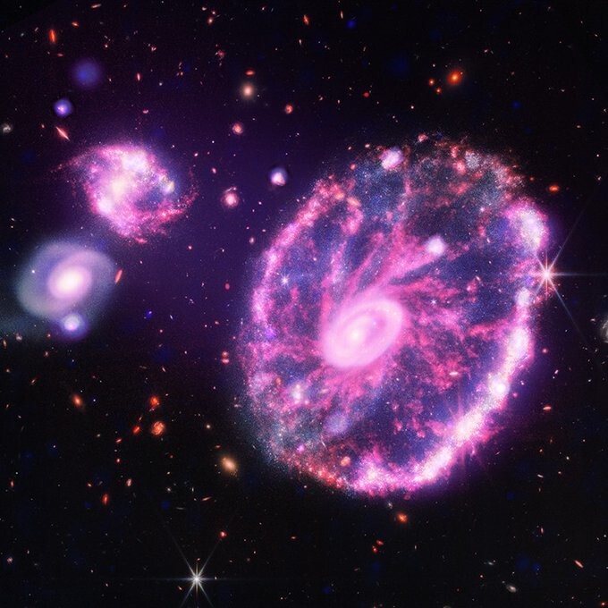 9. Это снимок с телескопа Джеймс Уэбб, который совместили с более старыми снимками космической рентгеновской обсерватории Чандра