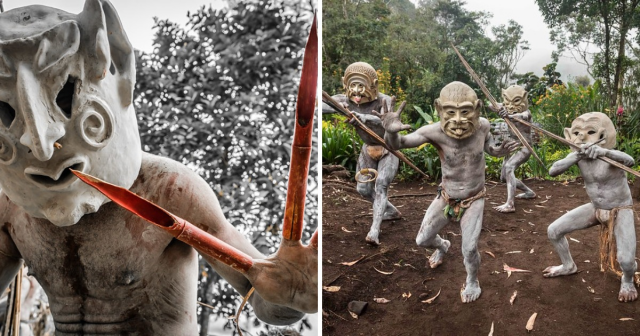 Белый цвет Асаро Мудмен (Грязевые люди Асаро) означает смерть. Дело в том, что на территории Папуа-Новой Гвинеи очень много враждующих племён. Эти ребята нашли способ запугать своего противника до смерти.