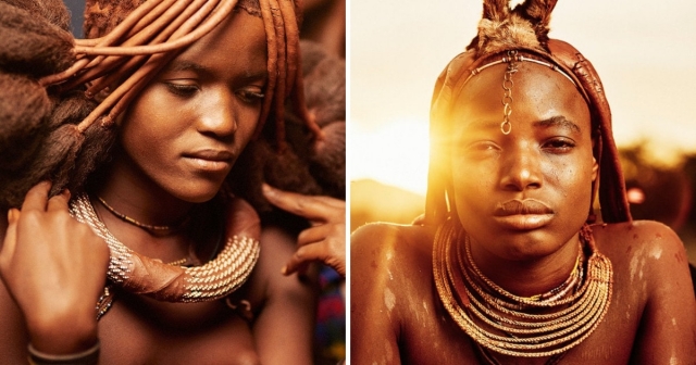 И женщины, и мужчины племени Химба покрывают свои тела и волосы смесью из охры, жира, пепла и глины, чтобы защититься от солнца. Но их причёски также служат показателем статуса. Такие косы девушкам заплетают только после созревания, а замужним положено вплетать в них украшения, в том числе из звериной кожи.