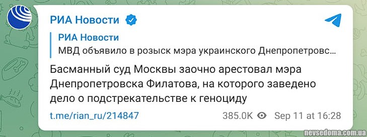 - Сегодня на России заочно арестовали мэра Днепра Филатова.