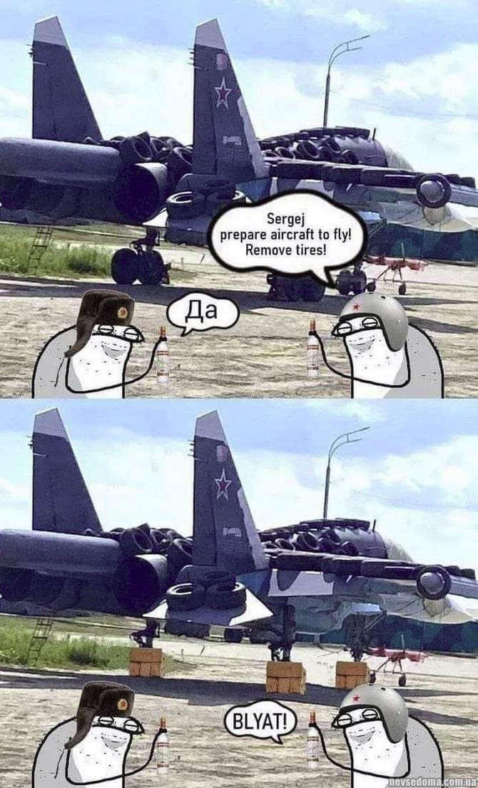 - Забавный мем про покрышки которыми защищают россияни свои самолеты