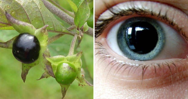 Сегодня для подчёркивания красоты своих глаз женщины активно используют косметику и контактные линзы. Раньше модницам эти методы были недоступны, поэтому в ход шёл сок белладонны — ядовитого растения, который расширял зрачок и делал взгляд сияющим и глубоким.
