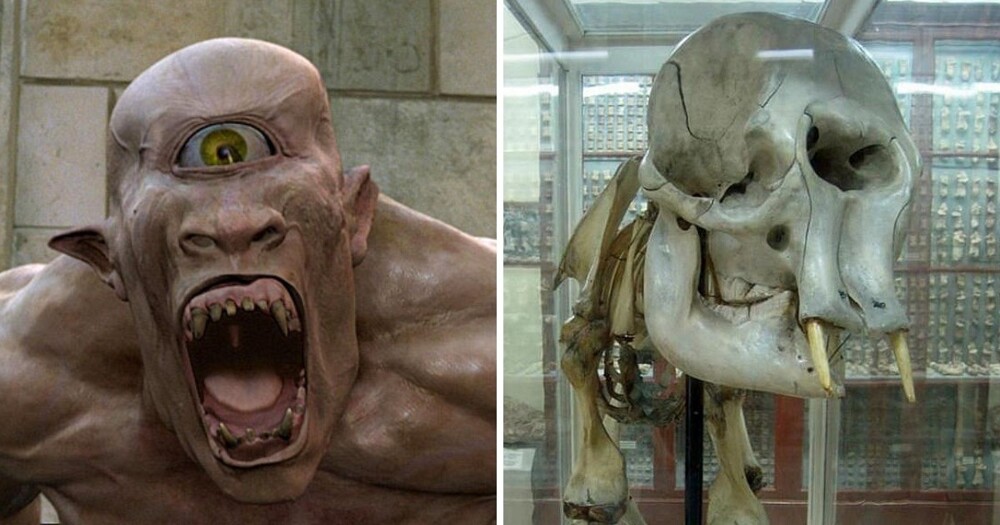 Циклопы — жуткие, одноглазые великаны, которые не прочь полакомиться людьми. На протяжении многих столетий люди мучались в догадках на счёт их существования, ведь о них повествует огромное количество легенд и мифов. В 1914 году палеонтолог Отенио Абель предположил, что корни домыслов о циклопах берут своё начало от карликовых слонов, существовавших ещё в доисторические времена. Исследования показали, что носовые полости у этих животных крайне большие. Вполне возможно, что люди, обнаружившие остатки слонов, могли принять их за страшных одноглазых монстров.