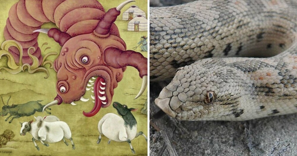 Огромный червь, обитающий в пустынях Монголии. По легендам он убивает крупный скот и людей с помощью яда или разряда электричества. В 1983 году известный зоолог Юрий Горелов смог увидеть странное создание вживую — ему его показали внуки пастуха, к которому исследователь приехал в гости. Им оказалась змея под названием восточный удавчик.