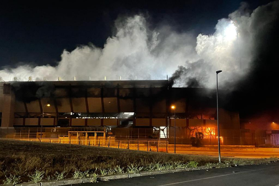 Футбольные фанаты из Италии огорчились поражению любимой команды и сожгли стадион соперников (3 фото + 1 видео)