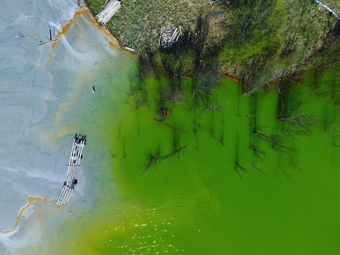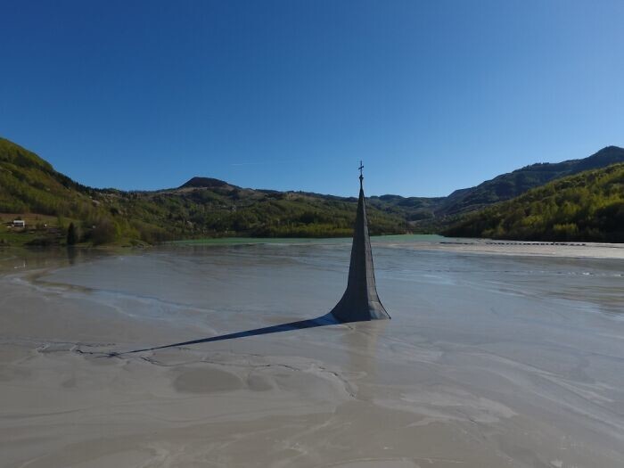Когда-то деревня Джамана в румынских горах была обычным поселением, а сейчас она почти полностью затоплена ядовитыми сточными водами от медного рудника. Местные жители год за годом были вынуждены перебираться выше по деревне, чтобы спастись от отходов. Недавно фотографы показали актуальные снимки деревни.