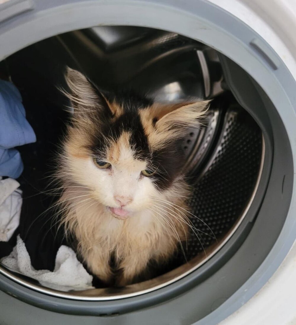 13. Наша кошка спит в стиральной машине