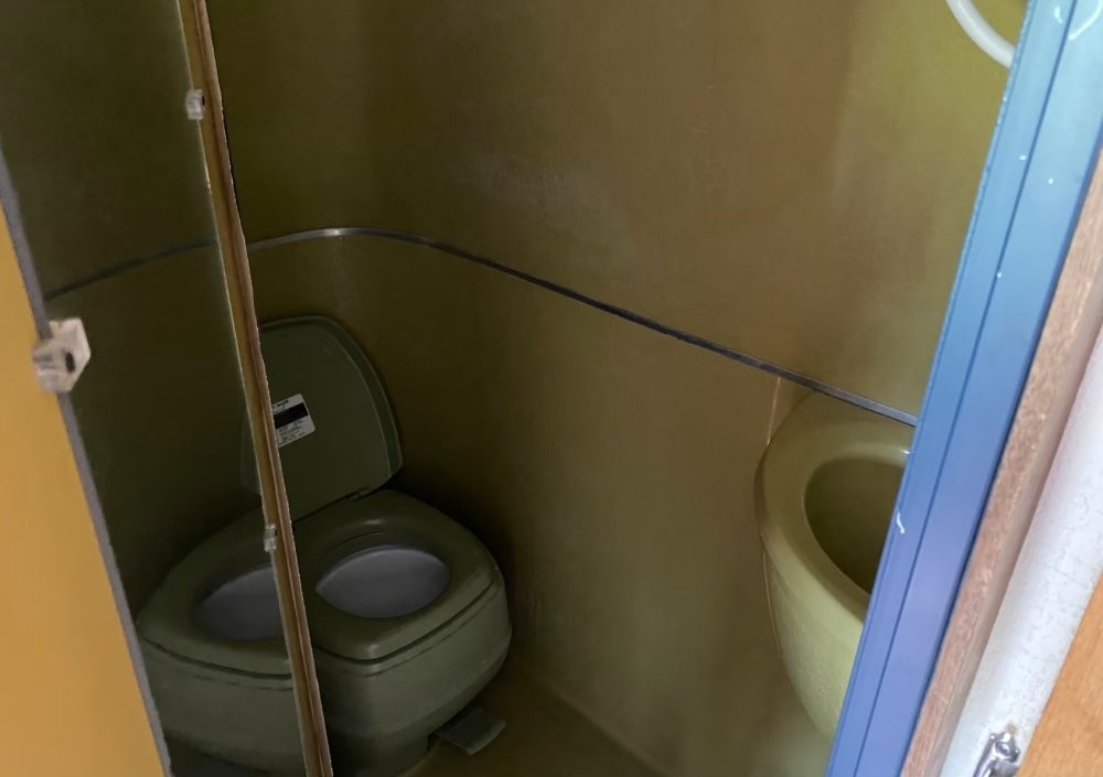 Диван на стоянке раскладывается в двуспальную кровать. На кухне есть раковина, холодильник с морозильником и СВЧ-печь. Комфорт обеспечивают санузел и кондиционер-отопитель, установленный на потолке. Запас чистой воды — 136 литров. На стоянке вдоль правого борта можно разложить маркизу.
