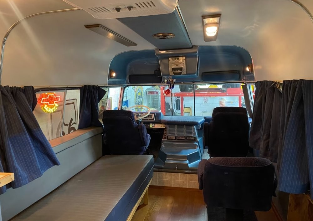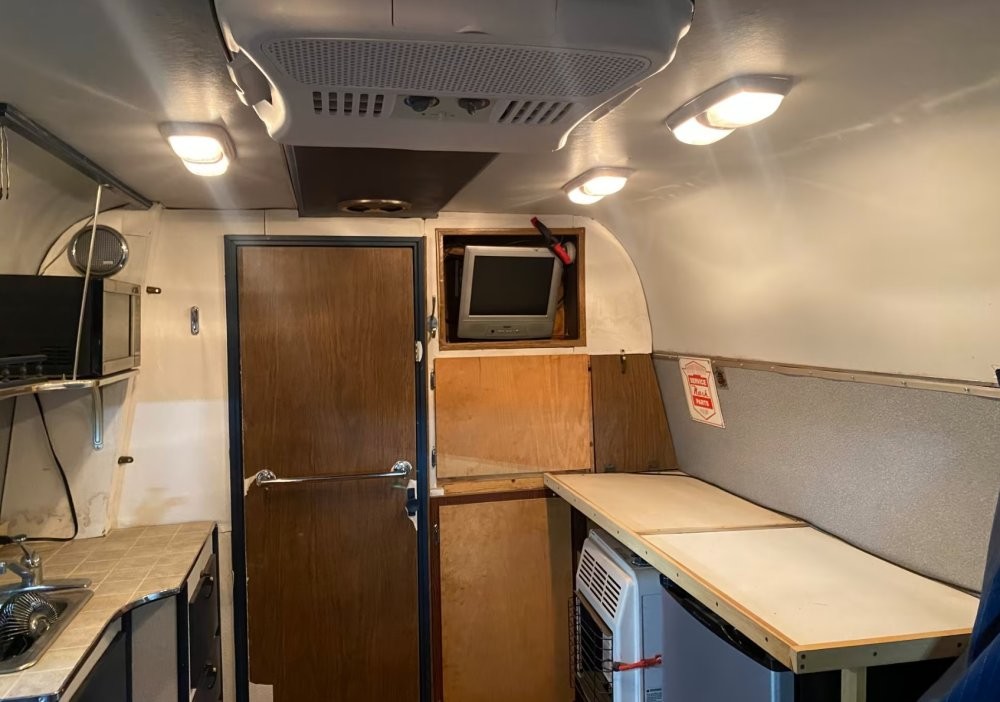 Машина оснащена двигателем Dodge V8 объёмом 5,2 литра и автоматической коробкой передач. Из оборудования указаны усилитель руля и тормозов, 110-вольтовая электросистема в жилом отсеке. Кемпер на ходу, но требует некоторых доработок в силу возраста.
