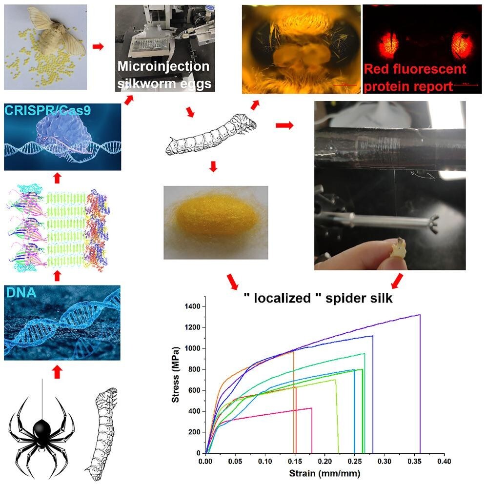 В попытке совместить преимущества шелковичных червей и пауков в одном организме, ученые создали трансгенных гусениц. В их ДНК ген, кодирующий основной белок шелковой нити, был заменен геном MiSp, который кодирует белок паутинной нити у пауков-крестовиков, обитающих в Восточной Азии.