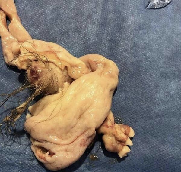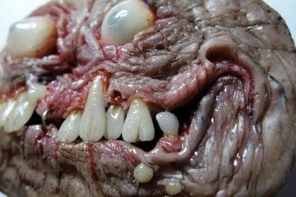 16. Вот как выглядит тератома — опухоль, из которой могут вырасти зубы, глаза, волосы и т. д.