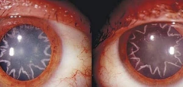 14. А вот как будут выглядеть электрические ожоги на глазах — по сути, те самые «звездочки в глазах»