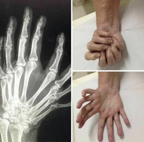 10. Существует также синдром зеркальной руки, когда у человека две кисти (без больших пальцев) вместо одной. Научное название этой врожденной аномалии — ульнарная димелия
