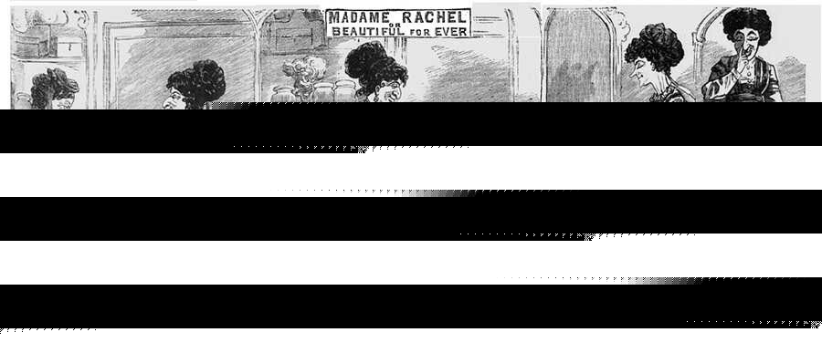 Только состоятельные светские дамы с большими деньгами могли позволить себе эксклюзивный визит к таинственному «дамскому реконструктору» или «омолаживателю», работавшей в то время в Мейфере. Её звали мадам Рашель из дома № 47а по Нью-Бонд-стрит. Самозванка, которая сама себя именовала «Продавщица косметики Её Величества Королевы», обещала своим клиенткам, что сделает их «прекрасными навеки!»