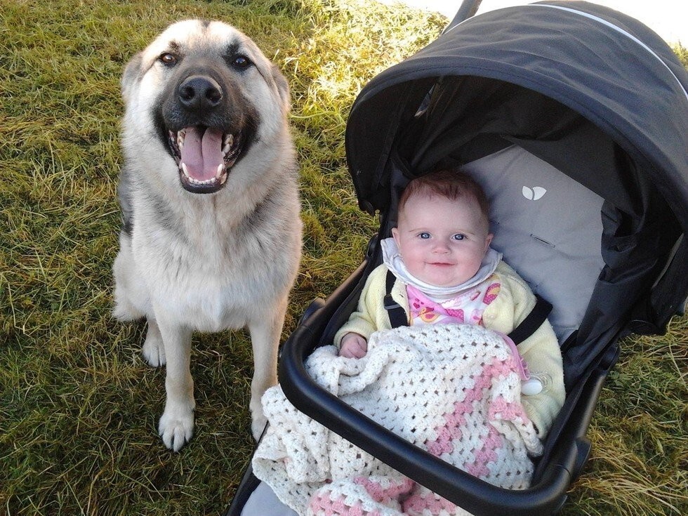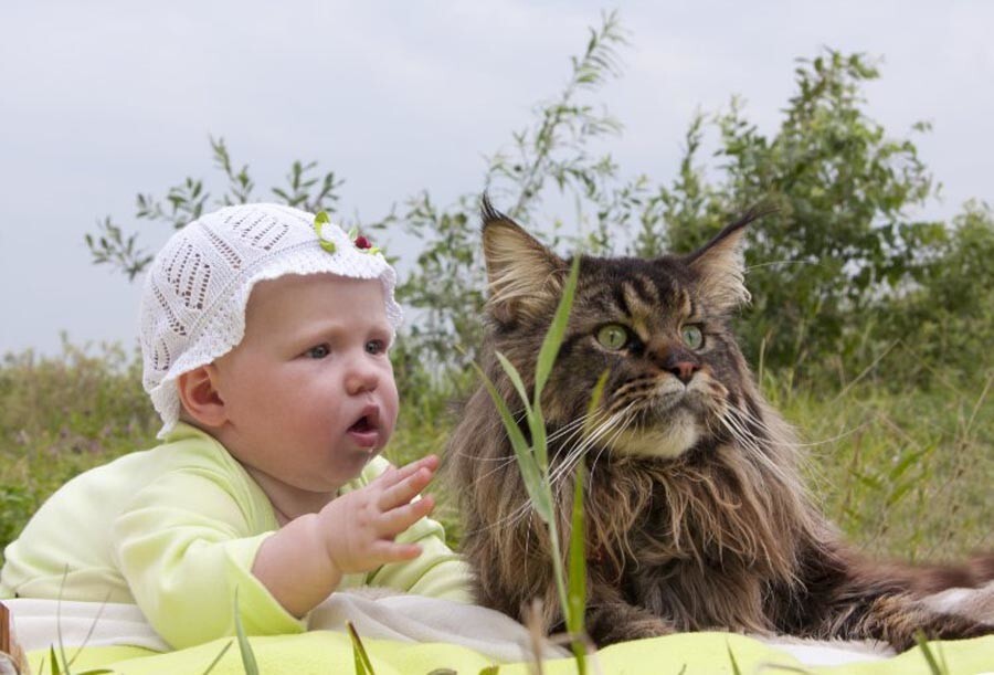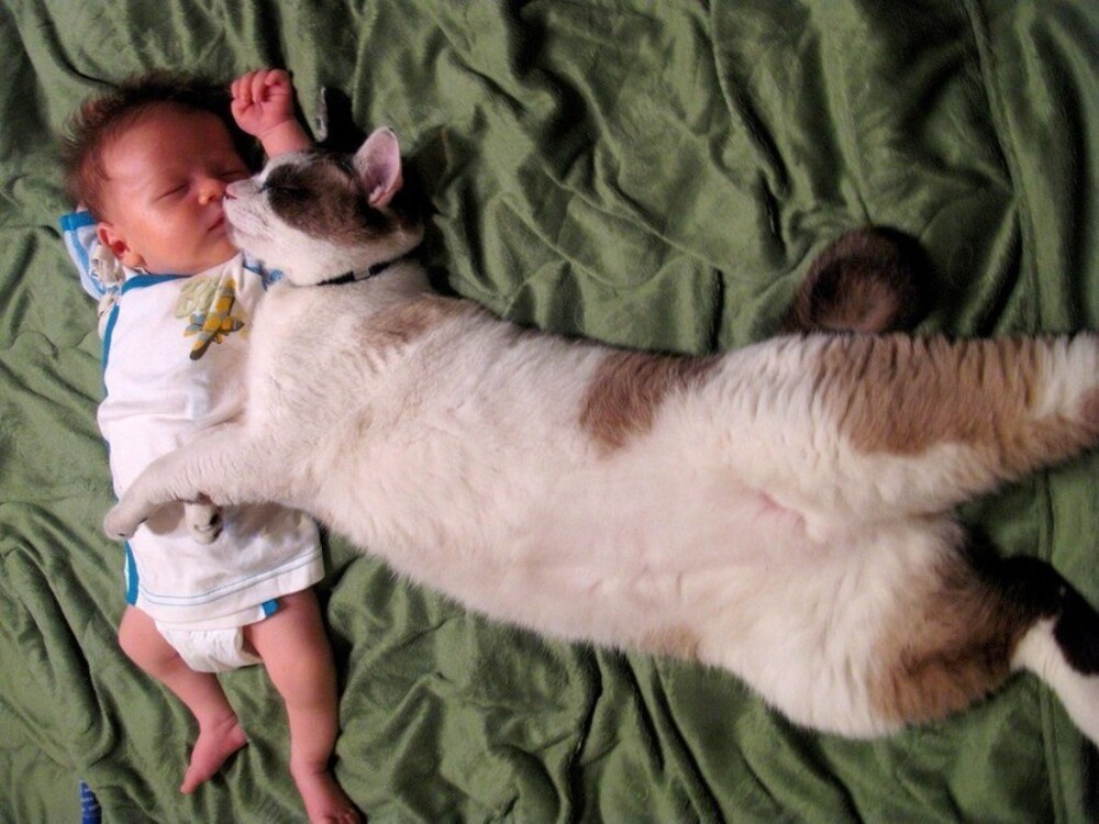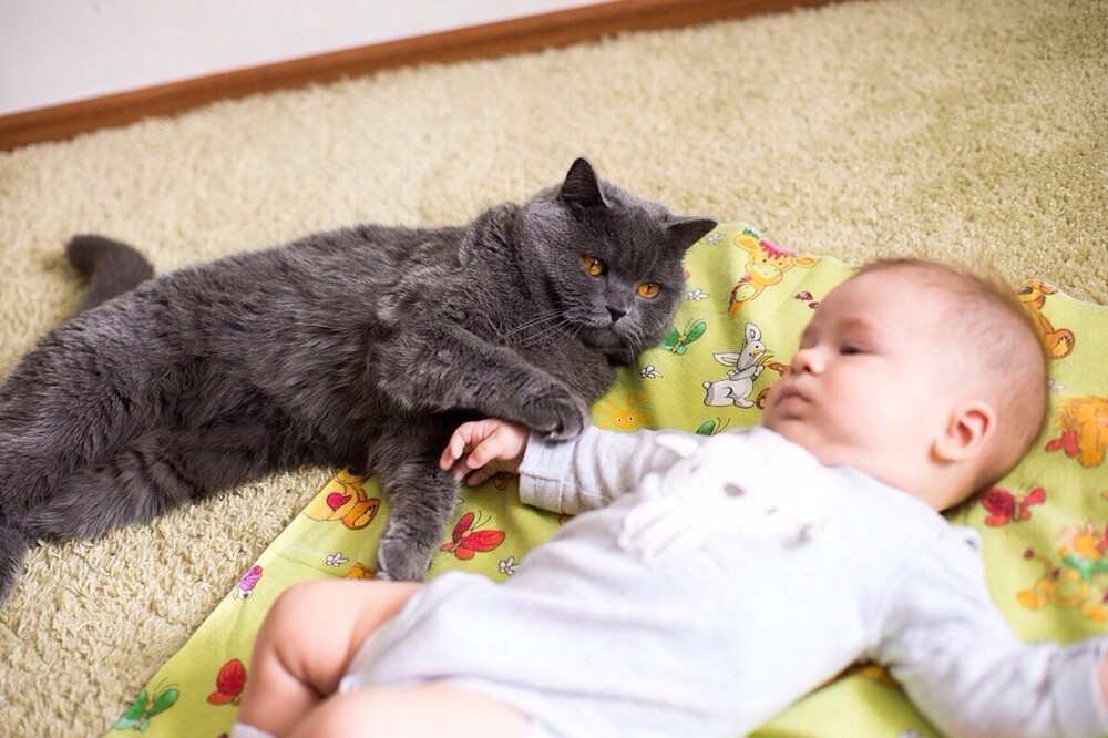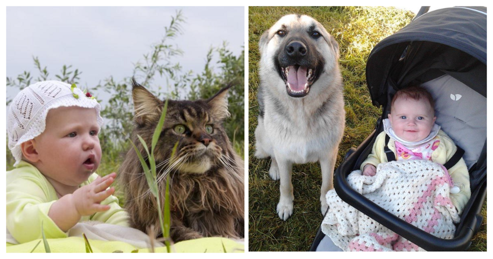 Молодые родители обычно очень переживают по поводу того, как питомец или питомцы воспримут появление нового члена семьи. И их можно понять. Но зато потом они приобретают в лице или, точнее, в мордахе самую усердную, внимательную и трудолюбивую нянюшку, которую можно только пожелать.