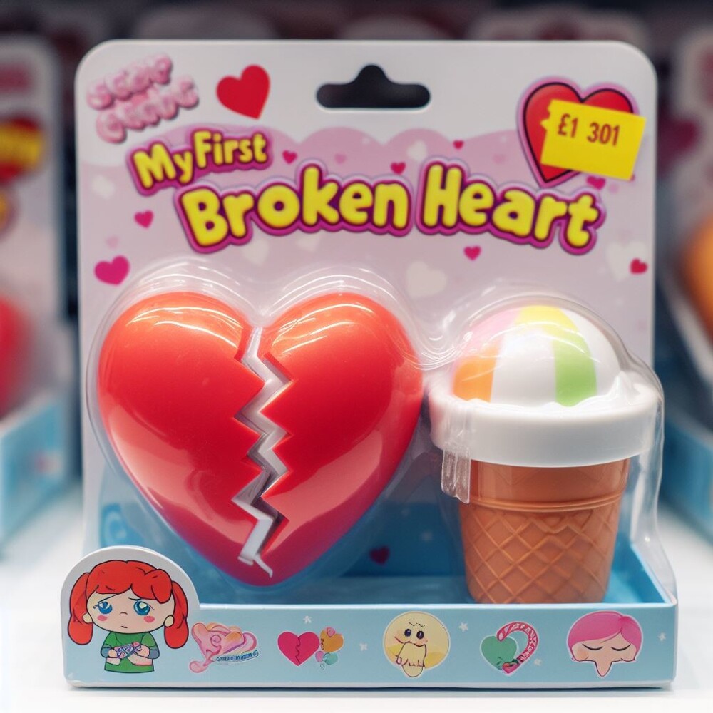 Нейросеть Dalle-3 показала, как выглядели бы игрушки, которые подготовят детей ко взрослой жизни. Ироничные картинки опубликовал Telegram-канал "Джимми Нейтрон". Первая депрессия, первое пиво, первые счета и первое разбитое сердце. Всё это, думаю, вы уже пережили.