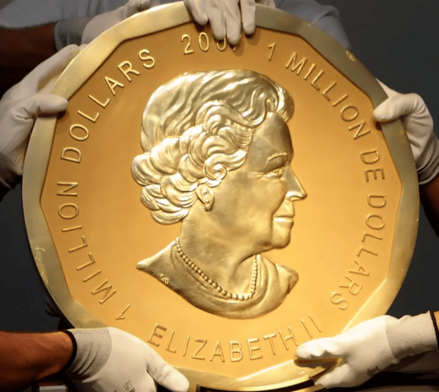 Гигантская золотая монета с изображением королевы стоимостью 4 миллиона долларов была украдена из музея в Германии. Воров и драгоценность, к сожалению, не нашли.