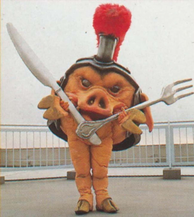 В арсенале монстра были зелёные молнии, которые он пускал из глаз, а также вилка и нож — их он использовал как оружие.
