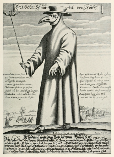 Первые чумные доктора появились в Лондоне и Венеции. Во время одной из эпидемий чумы в Венеции из 18 чумных докторов остался только один. Пять умерли от чумы, а остальные просто испугались и убежали.