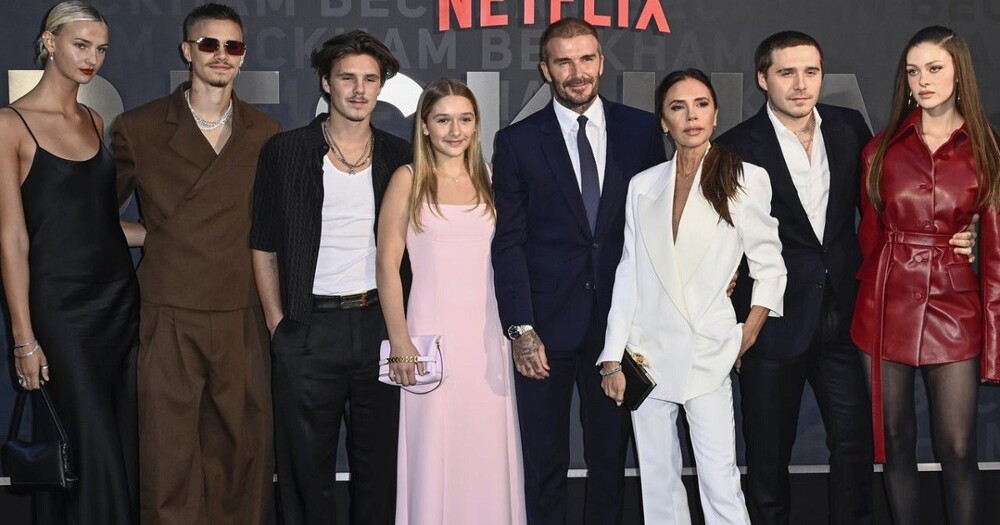 В понедельник, 2 октября, супруги посетили лондонскую премьеру документального мини-сериала. Их сопровождали четверо детей - Бруклин, Ромео, Круз и Харпер, а также жена Бруклина, актриса Никола Пельтц, и подруга Ромео, модель Миа Реган.