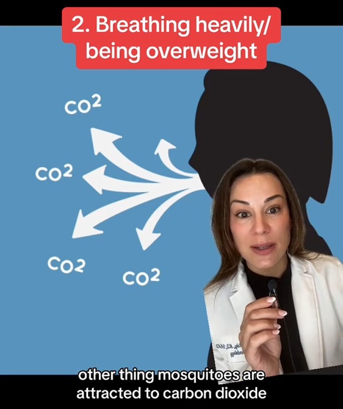 "Чем тяжелее вы дышите, тем больше привлекаете комаров. Люди с большим ростом и ожирением, как правило, дышат чаще и выдыхают больше углекислого газа".