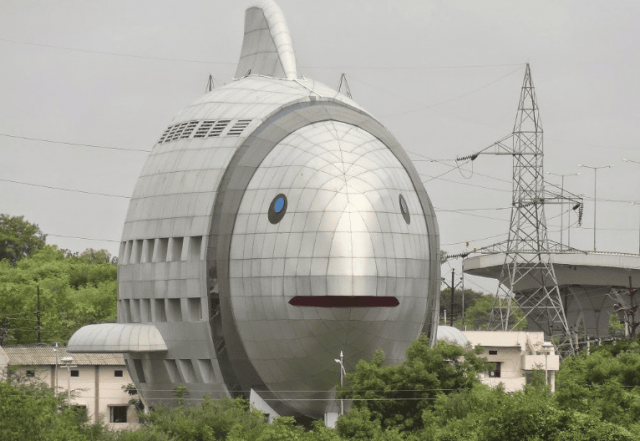 Здание похоже на инопланетное нечто. Может, это космический корабль? Или штаб, где собираются галактические монстры?