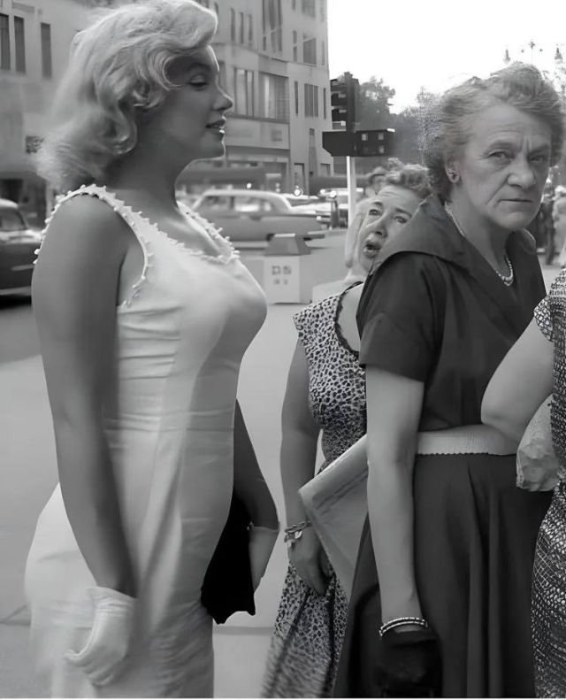 Мэрилин Монро в очереди за хот-догом, Нью-Йорк, 1957 г.