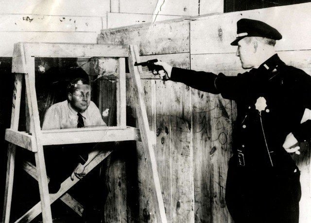 Испытание пуленепробиваемого стекла. Нью-Йорк, 1931 год.