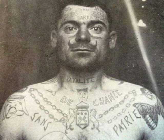 Заключенный французской тюрьмы, 1900-е. Усы татуировались в знак протеста против администрации.