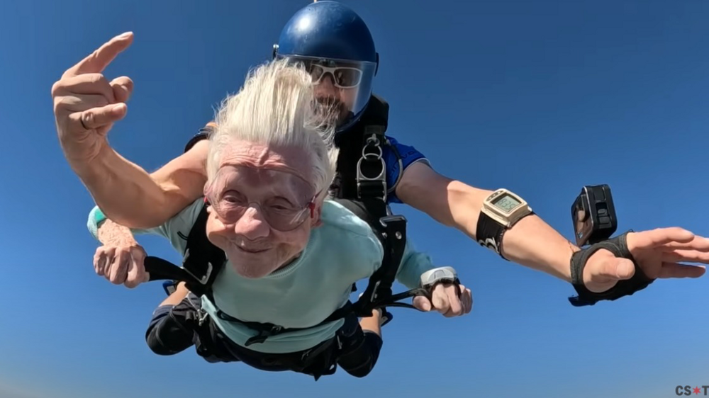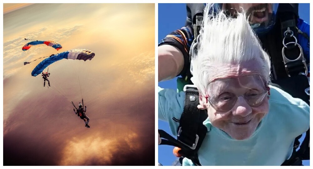 Небо, парашют, бабушка. Прыгнувшая с парашютом в 104 года бабуля, скончалась через неделю после прыжка (2 фото + 1 видео)