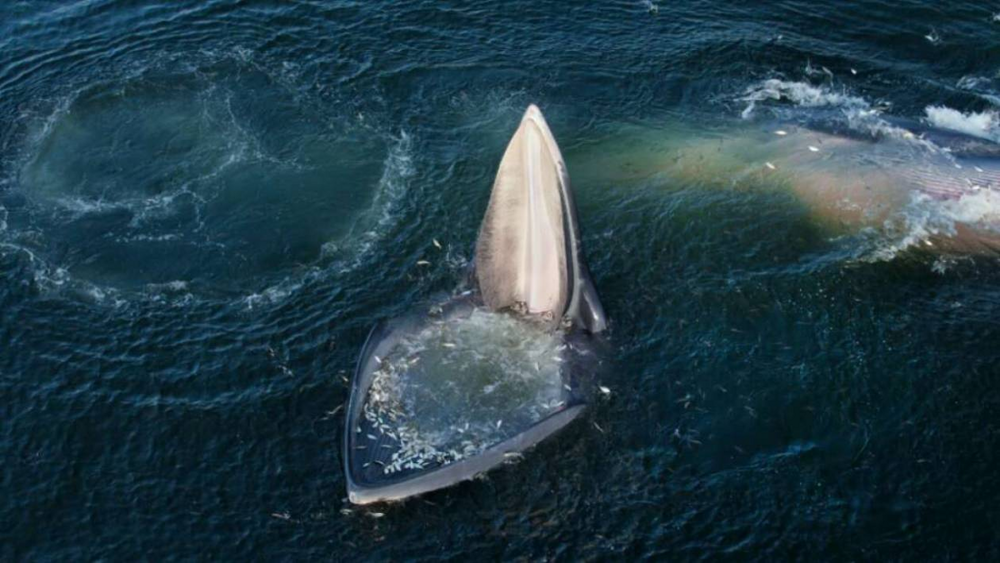 После забора воды рот закрывается, и жидкость фильтруется через пластинки китового уса по бокам челюсти. Всё съестное, что остается на пластинах, кит просто слизывает с усов языком.