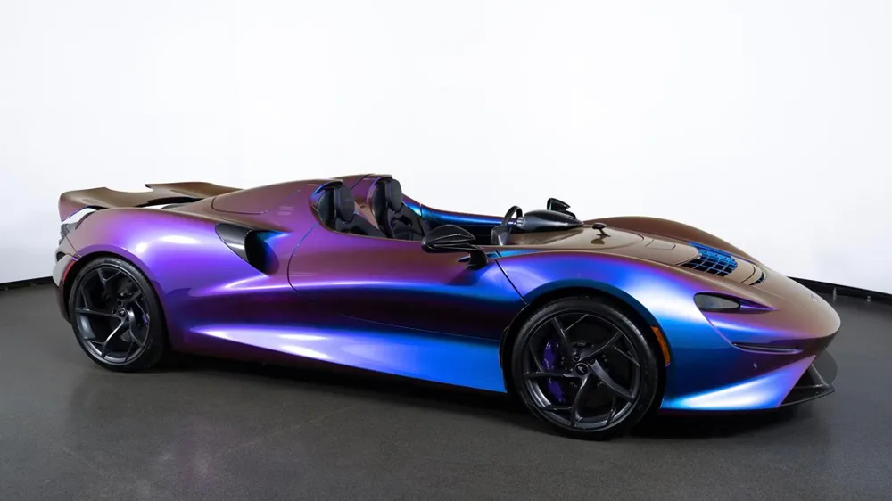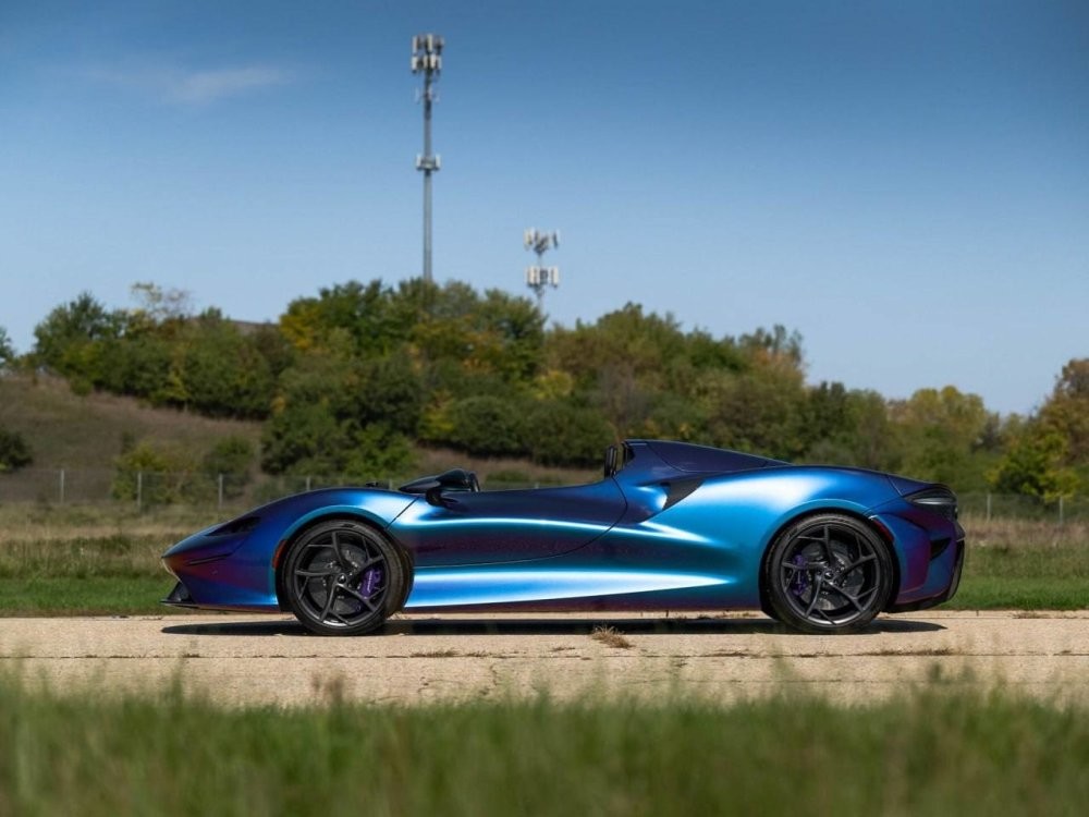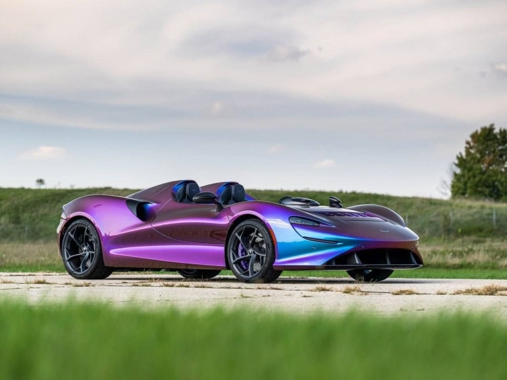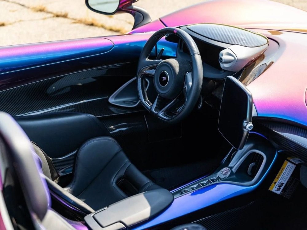 17 ноября в Лас-Вегасе на аукционе Сотбис выставят уникальный McLaren Elva 2021 года выпуска с кузовом-хамелеоном, который переливается на солнце разными цветами. До первой сотни разгоняется за 3 сек., а максимальная скорость превышает 300 км/ч. Лобового стекла нет, так что кататься придется в шлеме. Всего выпущено 149 штук, но у остальных обычный окрас. За этот экземпляр рассчитывают выручить от 1,8 до 2,3 миллиона долларов.