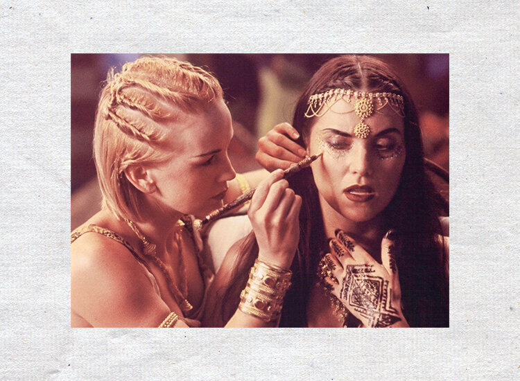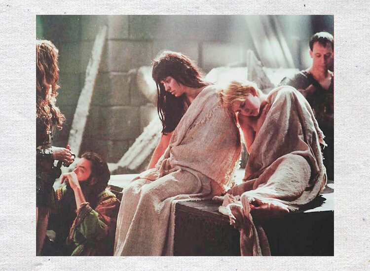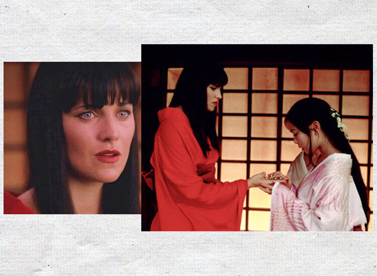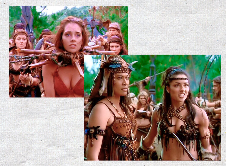 В эпизоде «Принцесса... воин», Зена на время занимает место Дианы, принцессы, похожей на воительницу как две капли воды. Конечно, это смена амплуа, а не полное перевоплощение, но все же. В серии «Зена... принцесса... бродяга» мы знакомимся с Мэг, и там всё та же история — смена амплуа. Так произойдет и в эпизоде о жрице девственниц Лее, роль которой исполнила Люси Лоулесс. Кроме Зены, в сериале три персонажа сыгранных Люси: Диана, Лея и Мэг. С этим разобрались, идем к более интересному и важному.