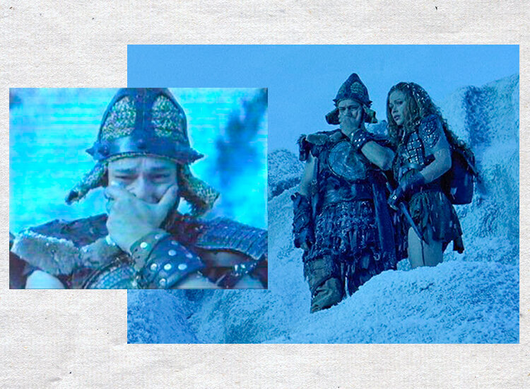 Кришна приходит на зов королевы воинов и превращает её в существо с четырьмя руками, чтобы она смогла противостоять Индражиту. Очевидно, что против шестирукого демона, своих двоих будет недостаточно. Эта метаморфоза Зены, наверное, самая яркая.
